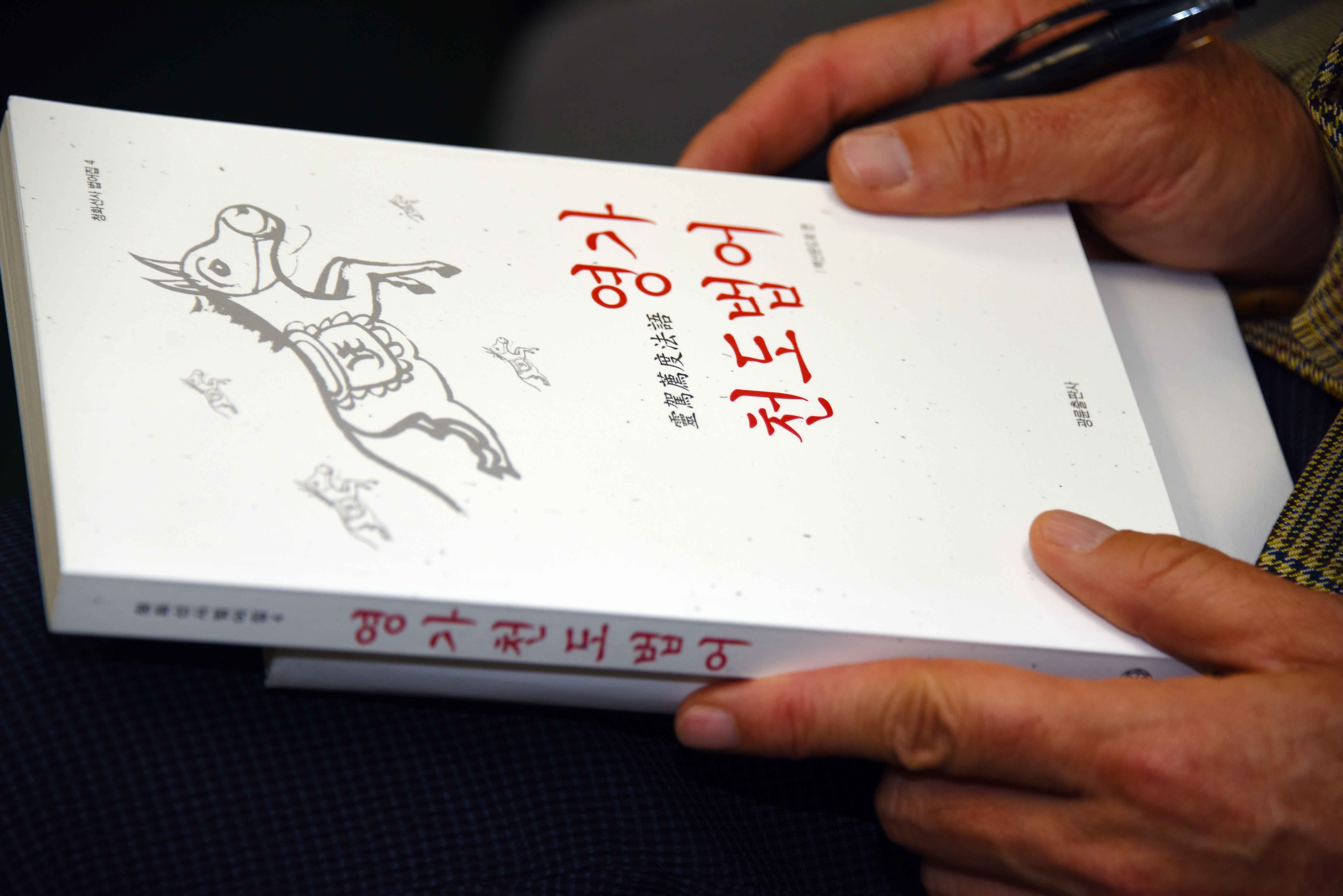 An instructor holds a book written by the Venerable Pomnyun Sunim. (Photo by Natela...