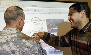 With instructor in front of a SmartBoard